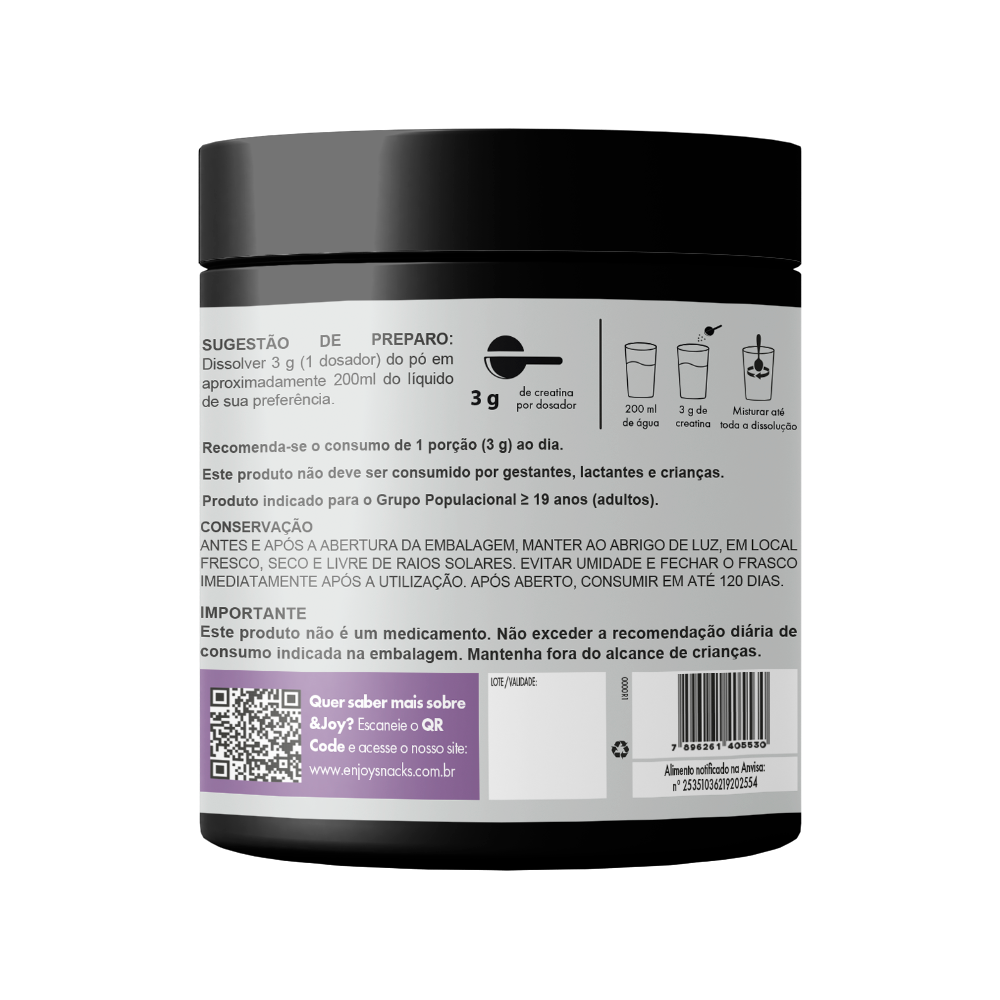 A Creatina Enjoy é ideal tanto para quem pratica atividades físicas quanto para quem leva uma rotina intensa e precisa de mais disposição no dia a dia. Ela atua no fornecimento de energia para as células, contribuindo não só para mais força e rendimento nos treinos, mas também para mais foco, resistência e vitalidade ao longo do dia. Em uma rotina corrida, onde cada detalhe conta, a Creatina Enjoy é uma forma prática e eficaz de manter o corpo e a mente em equilíbrio, com benefícios que vão além do esporte.